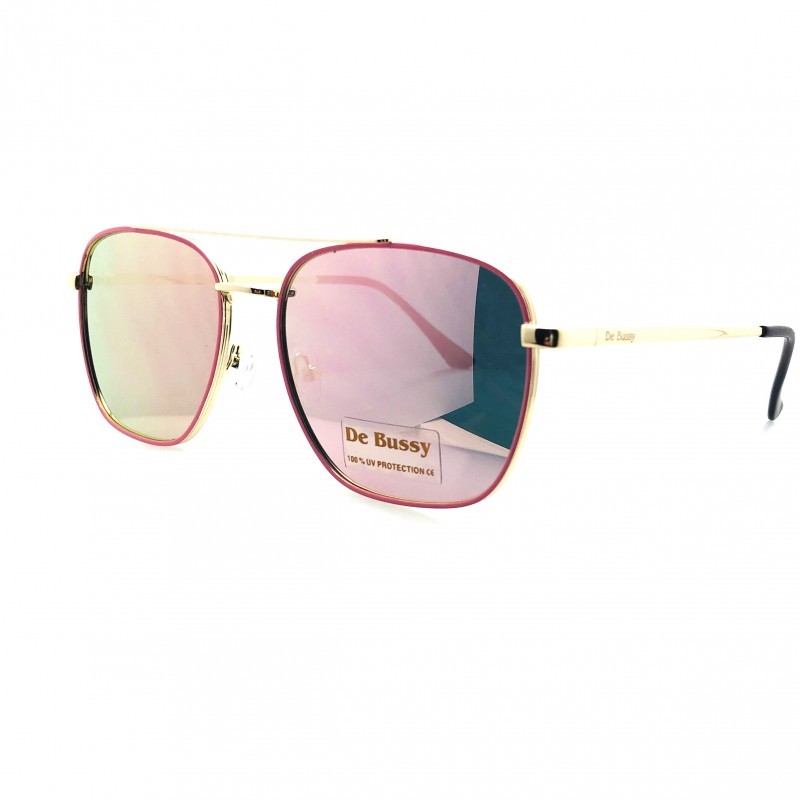 Gafa sol metal. Dorada. Doble puente. Lente espejo rosa.